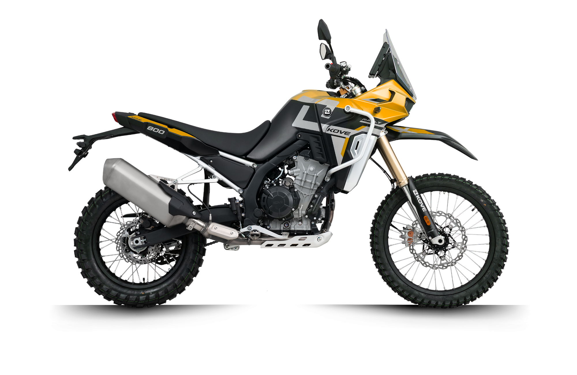 Die KOVE 800X-Rally ist ein professionelles Offroad-Bike für echte Hardcore-Fahrer. Ausgestattet mit Titan-Fußrasten, 3 mm Aluminium-Unterbodenschutz, speziellem Tank und Tuning vom KOVE Dakar Team bietet es maximale Robustheit.